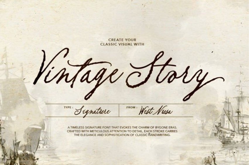 Vintage Story Font is a handwritten script font with an old and rustic charm. It’s perfect for wedding invitations, love letters, logos, quotes, and signatures.